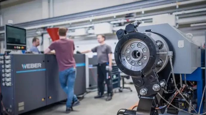 A Hans WEBER desenvolve e fabrica extrusoras e sistemas de extrusão há mais de 60 anos, combinando desempenho, confiabilidade e conectividade. Suas soluções atendem à extrusão de tubos, perfis, plásticos de engenharia e peletização, oferecendo desde máquinas individuais até sistemas completos integrados com automação, aditivos e moagem.