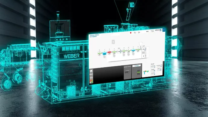 As soluções digitais NEXXT365 e o sistema de controle OS5 da Hans WEBER conectam máquinas, processos e dados em uma única plataforma, oferecendo automação avançada, controle de produção e total transparência operacional. Essa integração prepara a produção para a Indústria 4.0, garantindo eficiência, flexibilidade e conectividade ideal em todas as etapas.