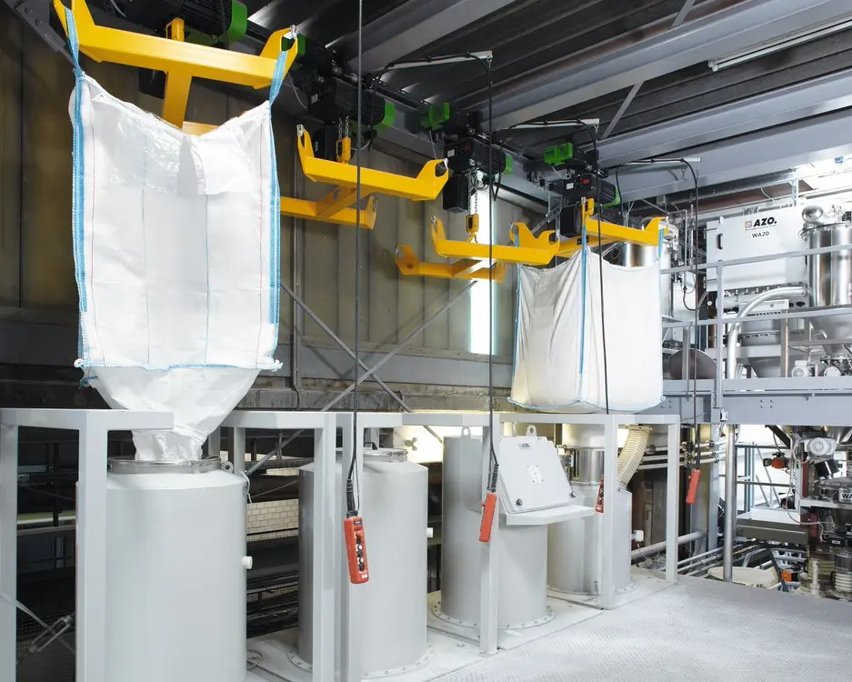 Os sistemas de descarga de big bags AZO asseguram o esvaziamento controlado e livre de poeira de pós e granulados, mesmo quando o material apresenta baixa fluidez. As estações modulares se integram facilmente a sistemas de transporte e dosagem, mantendo o ambiente de produção limpo e seguro.